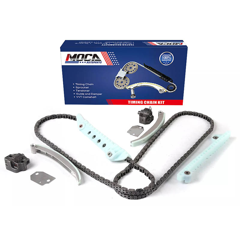 Kit -ul lanțului de sincronizare este o componentă indispensabilă în motoarele auto. Materialul său metalic și structura compactă asigură eficiența și fiabilitatea transmisiei. În același timp, transmisia sa de înaltă precizie și durata de viață lungă permit motorului să obțină deschiderea și închiderea valvei la momentul corespunzător, asigurând procese normale de aspirație și evacuare, îmbunătățind astfel performanța generală și eficiența motorului.